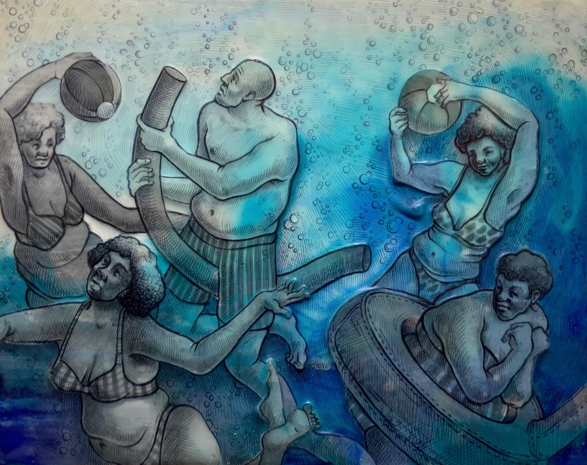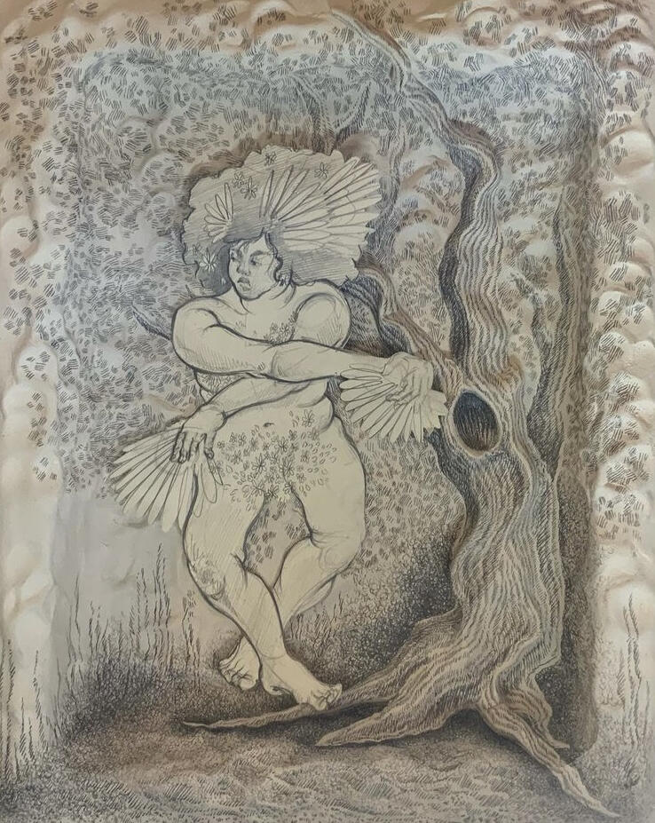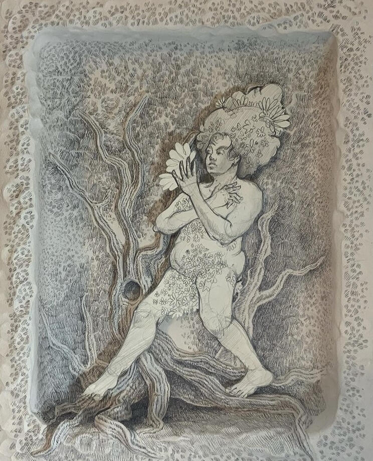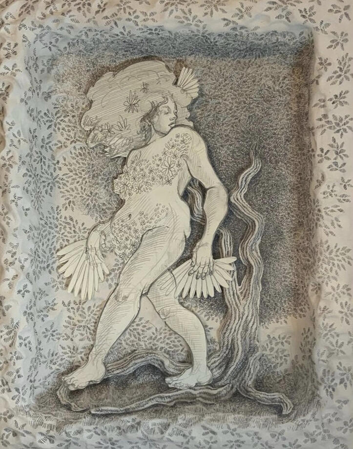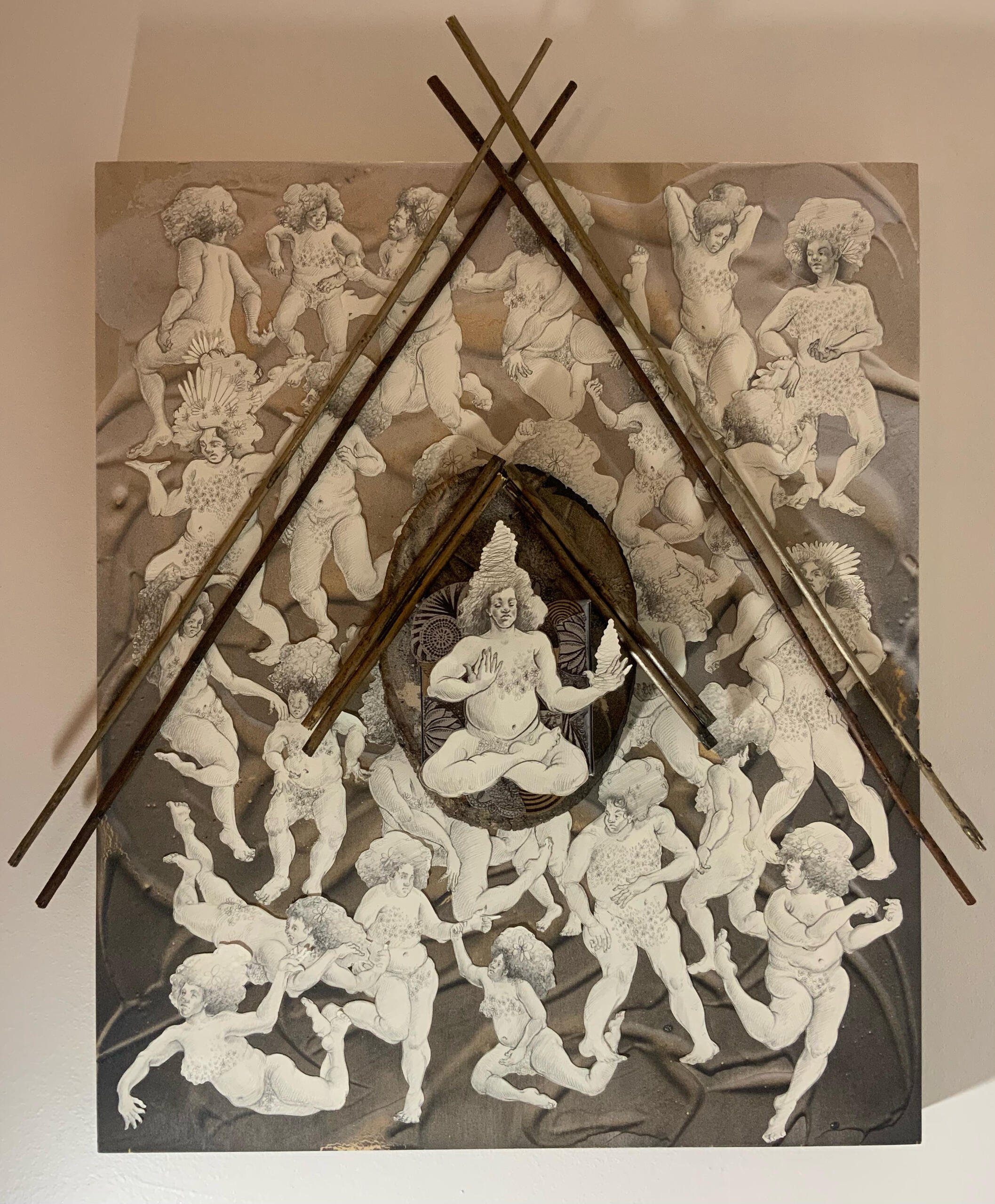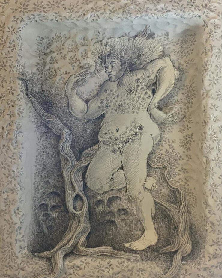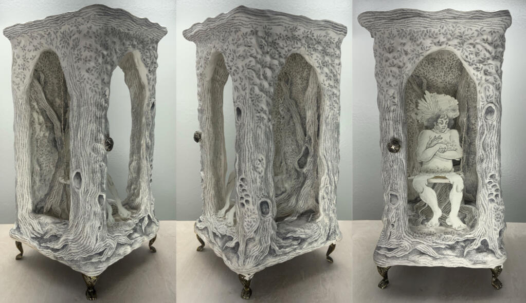“You didn’t come into this world. You came out of it, like a wave from the ocean. You are not a stranger here.” -Alan WattsAfter a year in deep meditation, I began visiting a void beyond mindfulness itself. It was a hole of nothingness consisting of everything and nothing all at once. The scape and the self rippled into one, and I realized the truth that to live was to meander. In this series, paperclay is sculpted to revitalize old, abandoned objects and renew them into awakening, shedding the light on our true inner spirit. Gestural sculptural applications convey the pulsating underlying waves of collective unconsciousness. Intensive graphite surface textures depict our physical reality beginning to break free from constraint. Trusting intuition through stream of consciousness work styles, drawings are coaxed out of the sculptural forms, unplanned and taking on a life of their own. At the heart of the series, the ephemeral figures are enjoying the moment and breaking free of all barriers by dancing and unifying into the scapes.