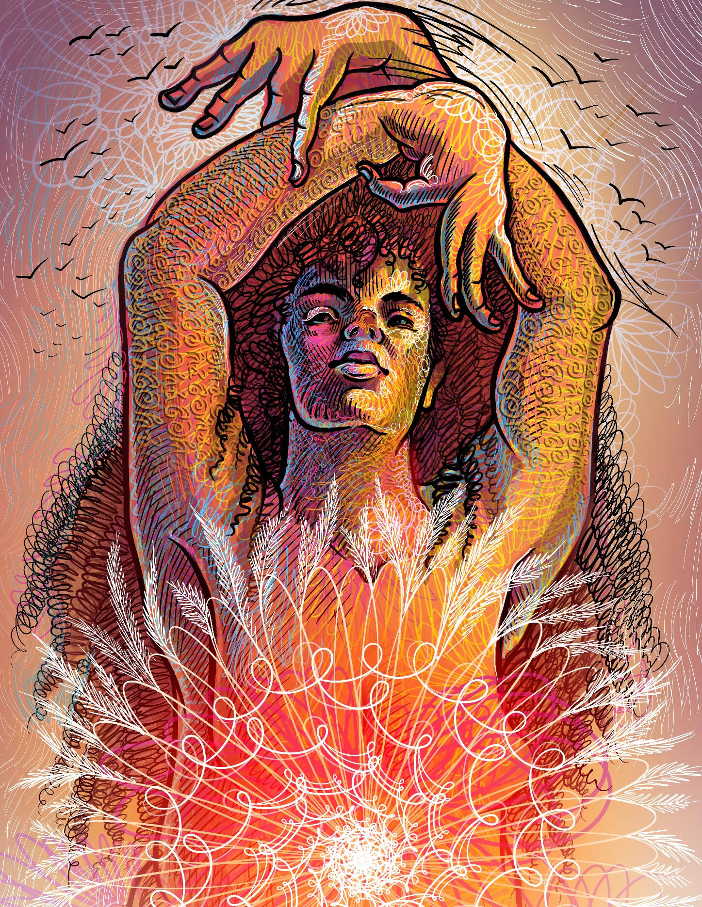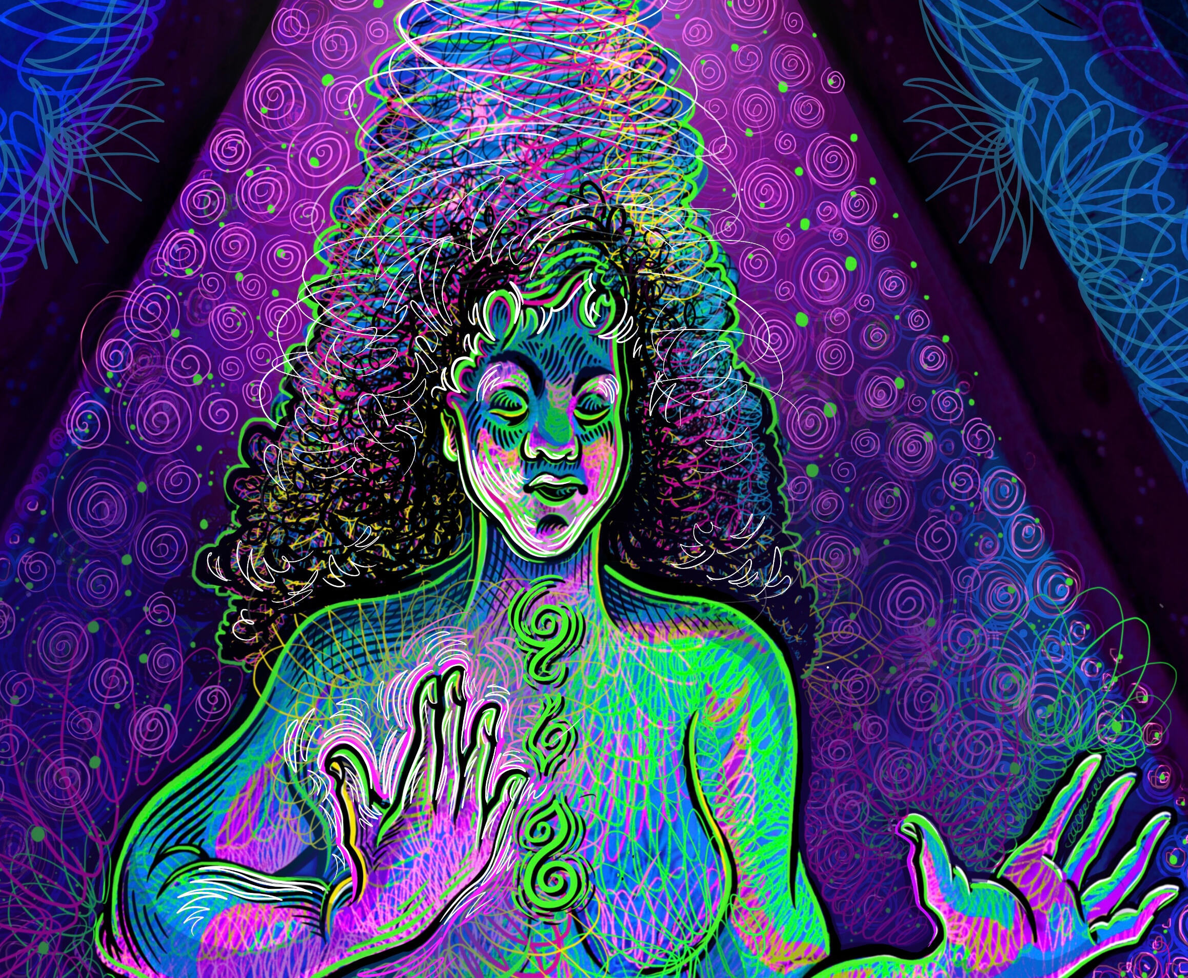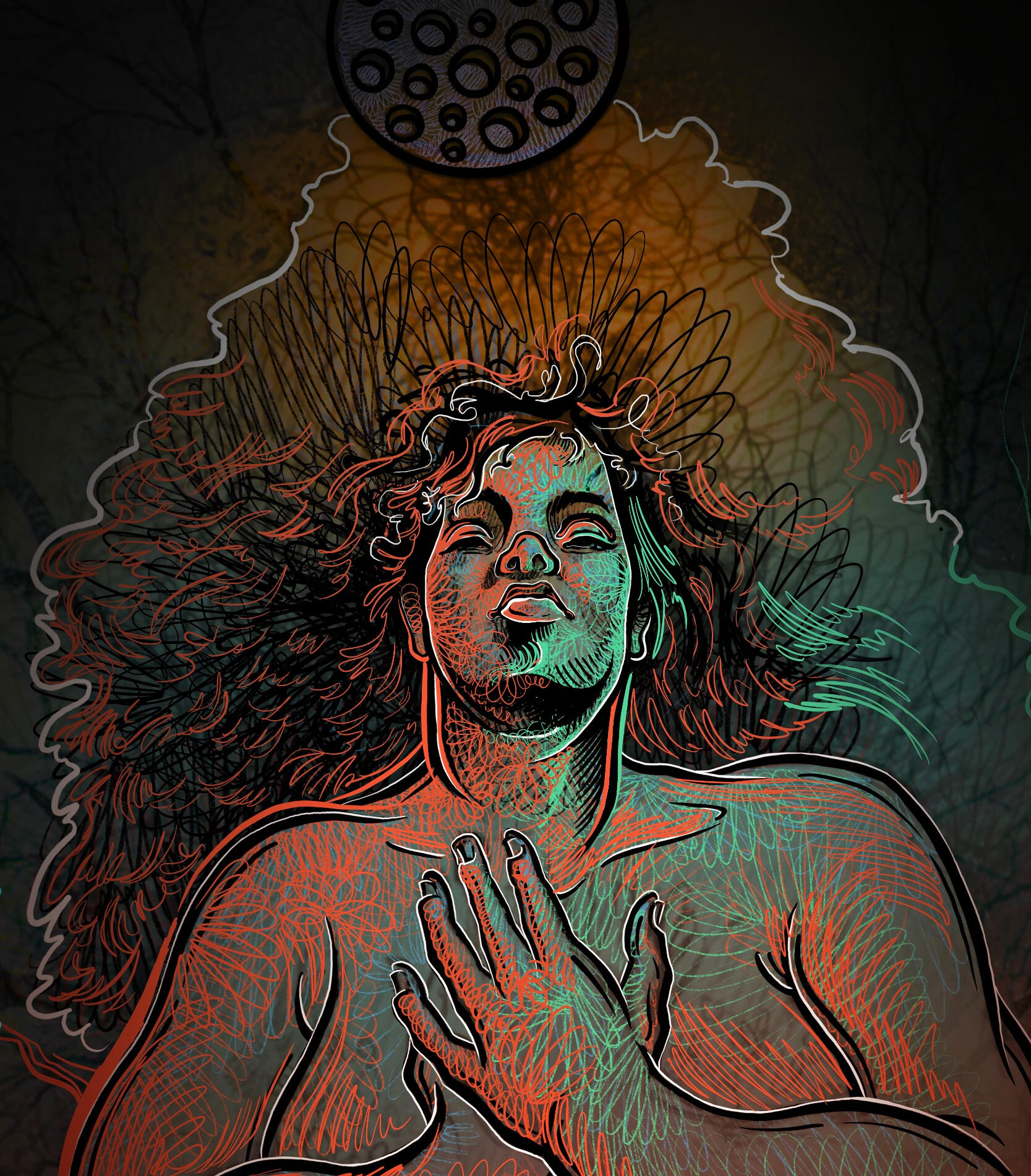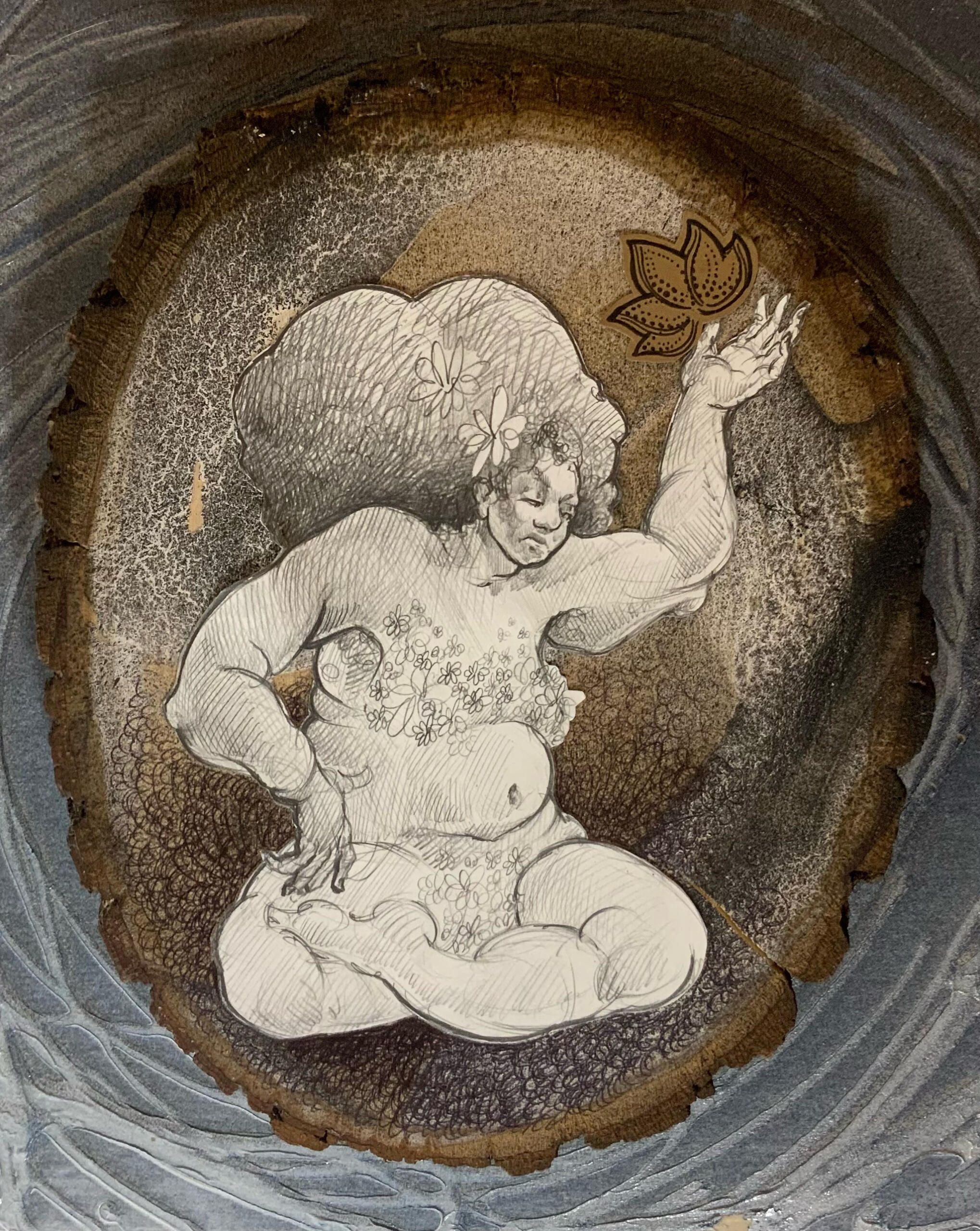 Wandering Wild is a visual series exploring somatic states, emotional movement, and sacred softness through spiraling feminine forms. Each piece began as a gesture that unfolds into figures that unravel and merge with the cosmic spaces surrounding them. The figures represent a stoic moving consciousness that is one with the natural world and fully accepting of what is. Originally inspired by the myth of year-walking from Nordic traditions and my own experiences with the forest as a place of refuge, the work imagines a wild interior world where healing comes not from fixing, but from feeling and being one with the surrounding world.Drawing these figures became a way to map the body’s quiet storms—the way emotion sticks and releases, the way we spiral through growth. I let the drawings lead, layering line and texture until they became more energy than anatomy.This series is not about answers. It’s about movement and holding space for what words often can’t: the felt sense of being alive.