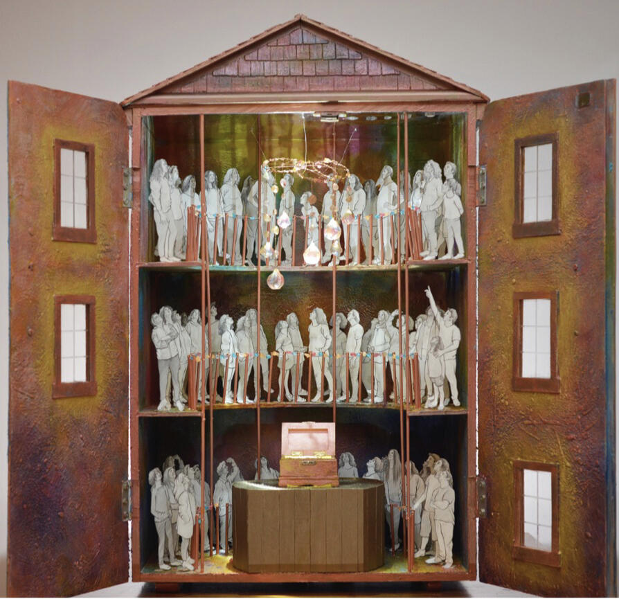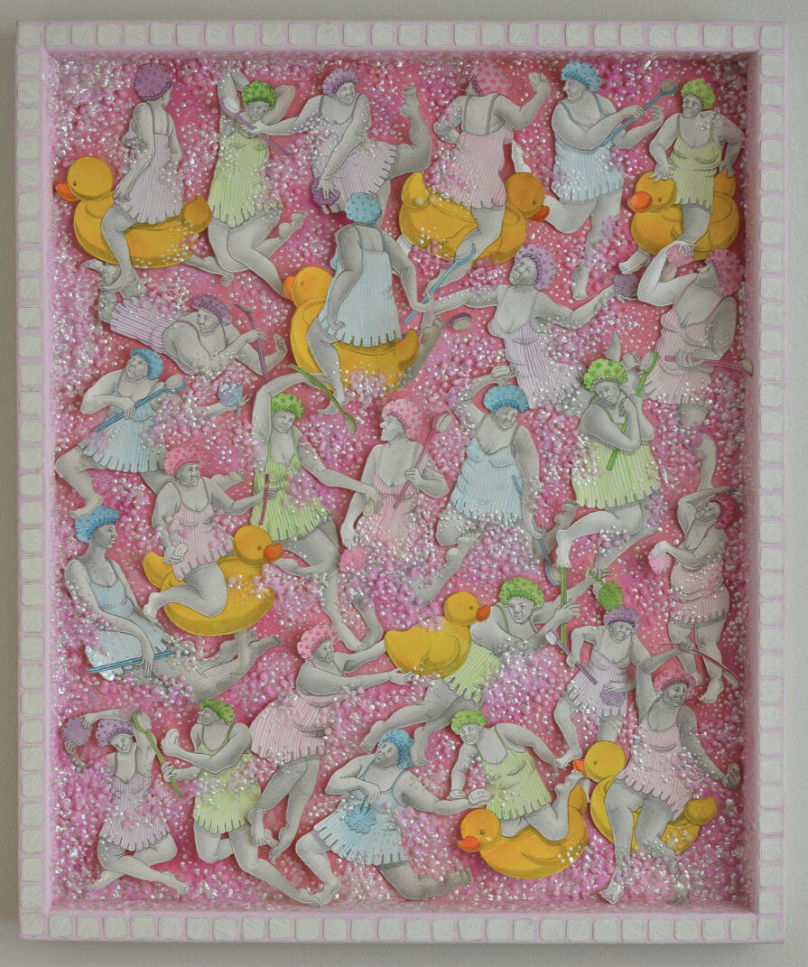 “Some people think a great deal too much. Of that I am sure.” Mary Poppins, by P.L. TraversMindfulness and being in the present moment has become all the rage. The term itself, however, implies the mind being full, and the practice is sometimes hijacked as yet another way to become better, more useful or productive as human beings. My work peels back the layers to reveal the truth that what we refer to as mindful might instead be mindless. In the absence of the mind we may stop containing ourselves or others into psychological boxes of what we should be and instead begin trusting our intuition to find what we are actually searching for which is already present around us.The work is inspired by the philosophical writings of both Alan Watts and Albert Camus. The work of Watts synthesized the teachings of Buddhism, Taoism and Hinduism with the principles of western psychology to further understand the true oneness and interconnectedness of all. Camus developed the philosophy of absurdism based upon human beings existing in a purposeless, chaotic universe that is ridiculous and absurd. These two contrasting yet harmonizing philosophies come together visually within my work. Life is both completely tragic and completely beautiful. On this earth we are as fragile and delicate as the papers dolls in my work. Everything is ephemeral, and we are here to use this time in our meatsuits as we please. In this journey I aim simply towards mindlessness, and I will draw, play, sing, dance and find true connections with others in the short time I have here.